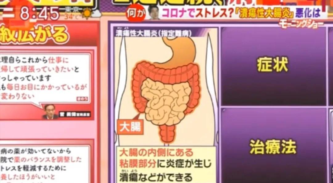 因此日媒推断,安倍很有可能是此前的旧病--“溃疡性大肠炎”复发,我们先来看一下什么是溃疡性大肠炎?