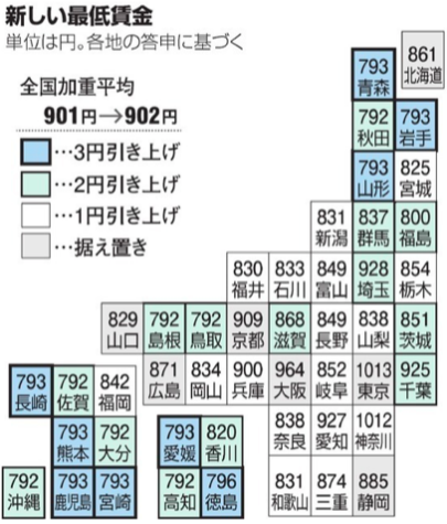 虽然日本各地经常不跟着国家走,但这回在工资基准上大家却都整齐地同国家站在了一起。
