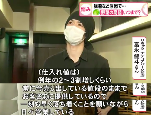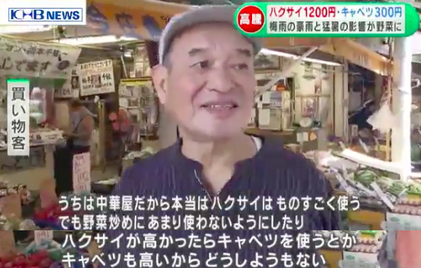 ▲日本菜场经营者:“现在的白菜价应该是历史最高水平了。”