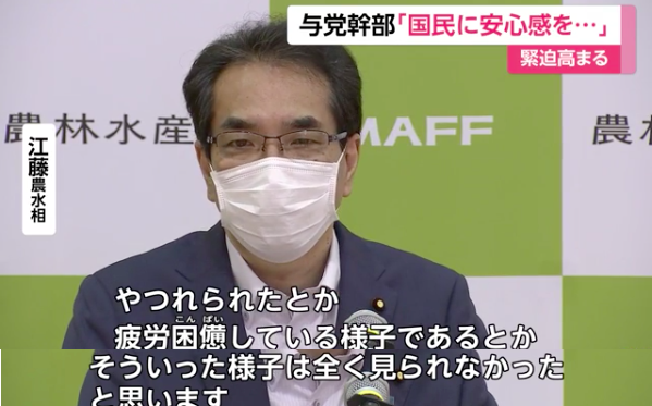▲农林水产大臣:完全看不出首相疲惫的样子