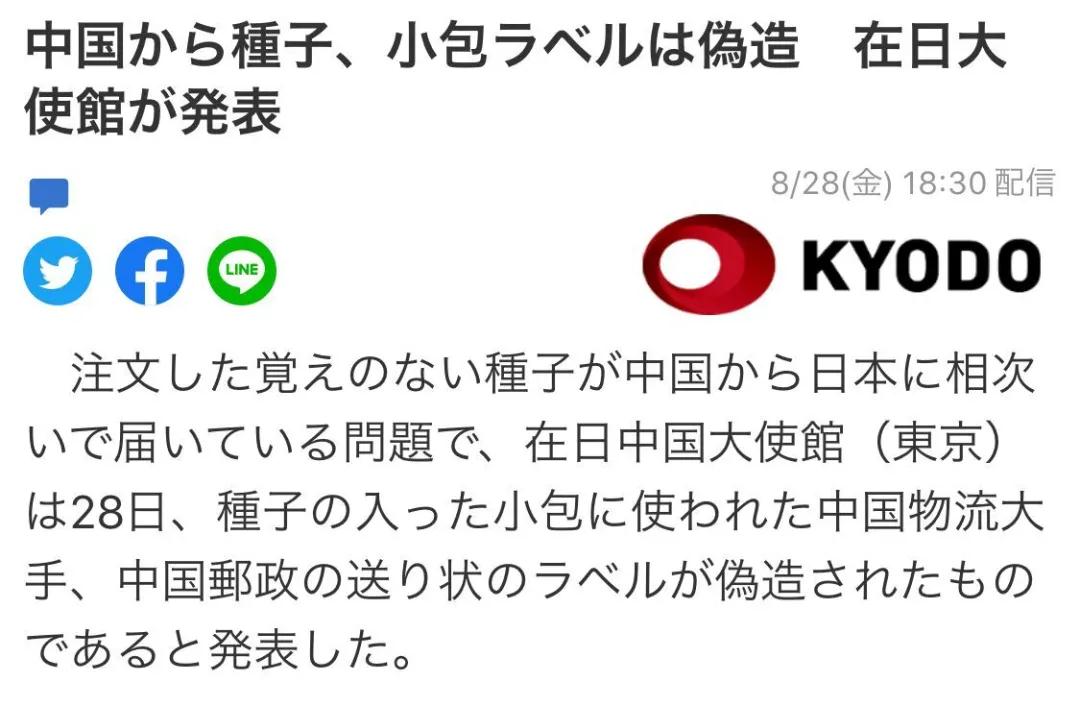 另外,近日中国大使馆正式就近期在日本引起热议的“种子包裹”问题进行了辟谣。此前日本各地的住民纷纷表示收到了来自“中国”的国际包裹,里面装的竟然是一袋袋的种子。对此,所有人都表示并没有订购相关商品,不明白为什么会有这样的情况发生。
