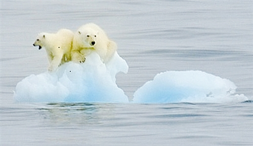 随着全球变暖,北冰洋无冰区域越来越大,每年无冰时间越来越长,北极熊只好在岛屿之间长距离游泳觅食,或撤退到更北的地方。前一种情况下,北极熊会消耗大量体力;后一种情况下,北极熊将找不到足够的食物。许多母熊和小熊因此不能积累足够的体脂肪,生存堪忧。