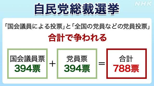 正常情况下,自民党的总裁选一般采用国会议员加党员的对等投票制。