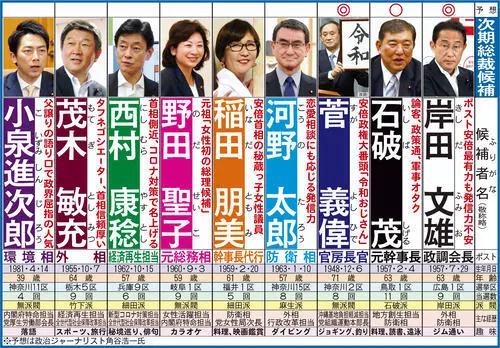经日本各路政治记者分析,目前最有可能当选自民党新总裁的总共有以下几位(排名分先后)。